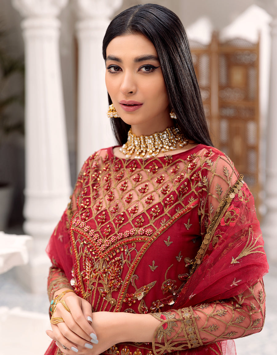 Heavy Net embroidered handmade gown.